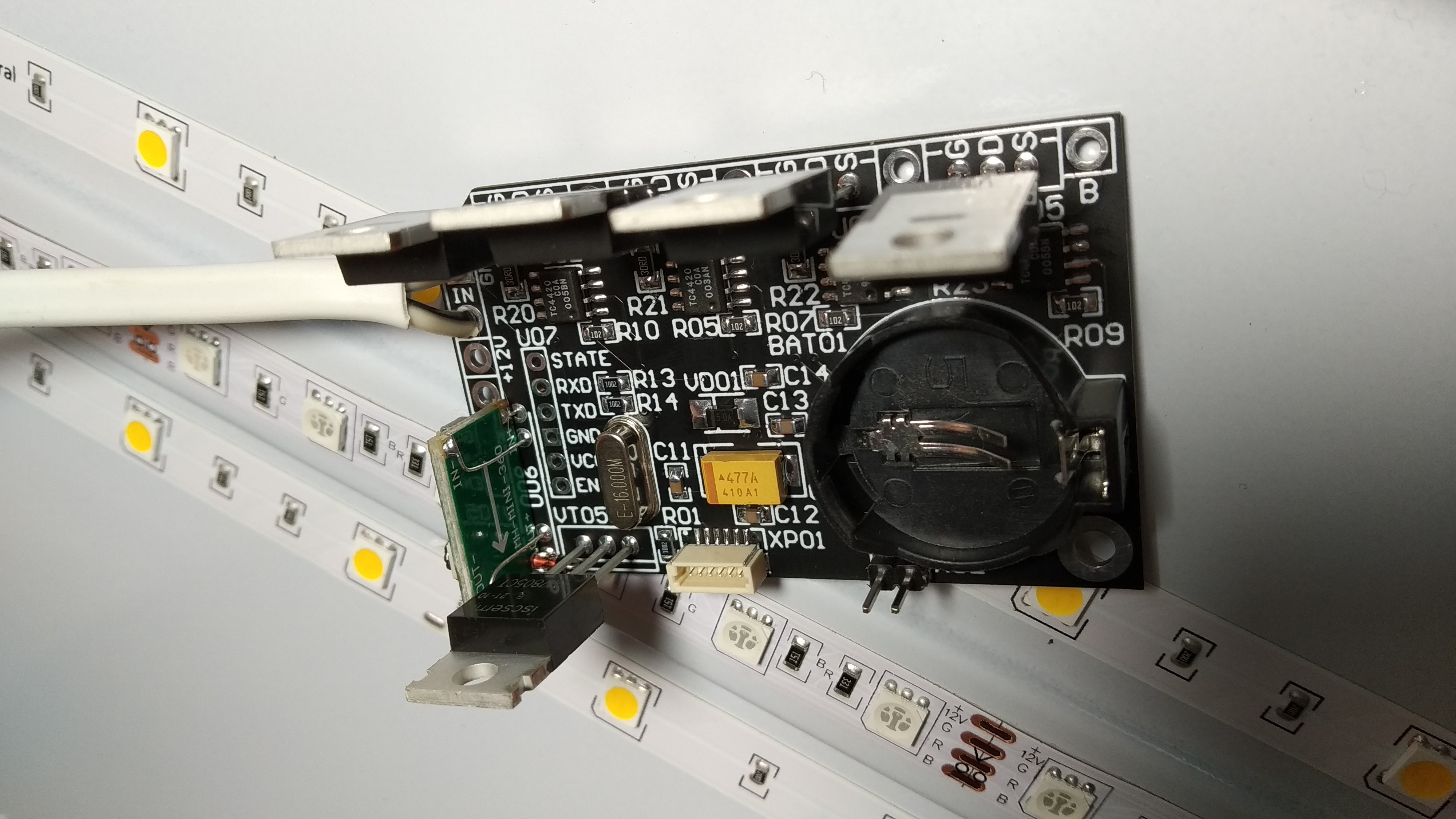 Светильник на 12вольт. Регулировка яркости и настройка времени производиться через телефон c помощью bluetooth.